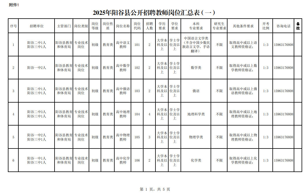 根据阳谷县事业单位编制及岗位空缺情况,按照《事业单位人事管理条例》(国务院令第652号)、《山东省事业单位公开招聘人员实施办法》(鲁人社规〔2022〕2号)等规定,经研究同意,现将2025年阳谷县公开招聘教师有关事项公告如下: